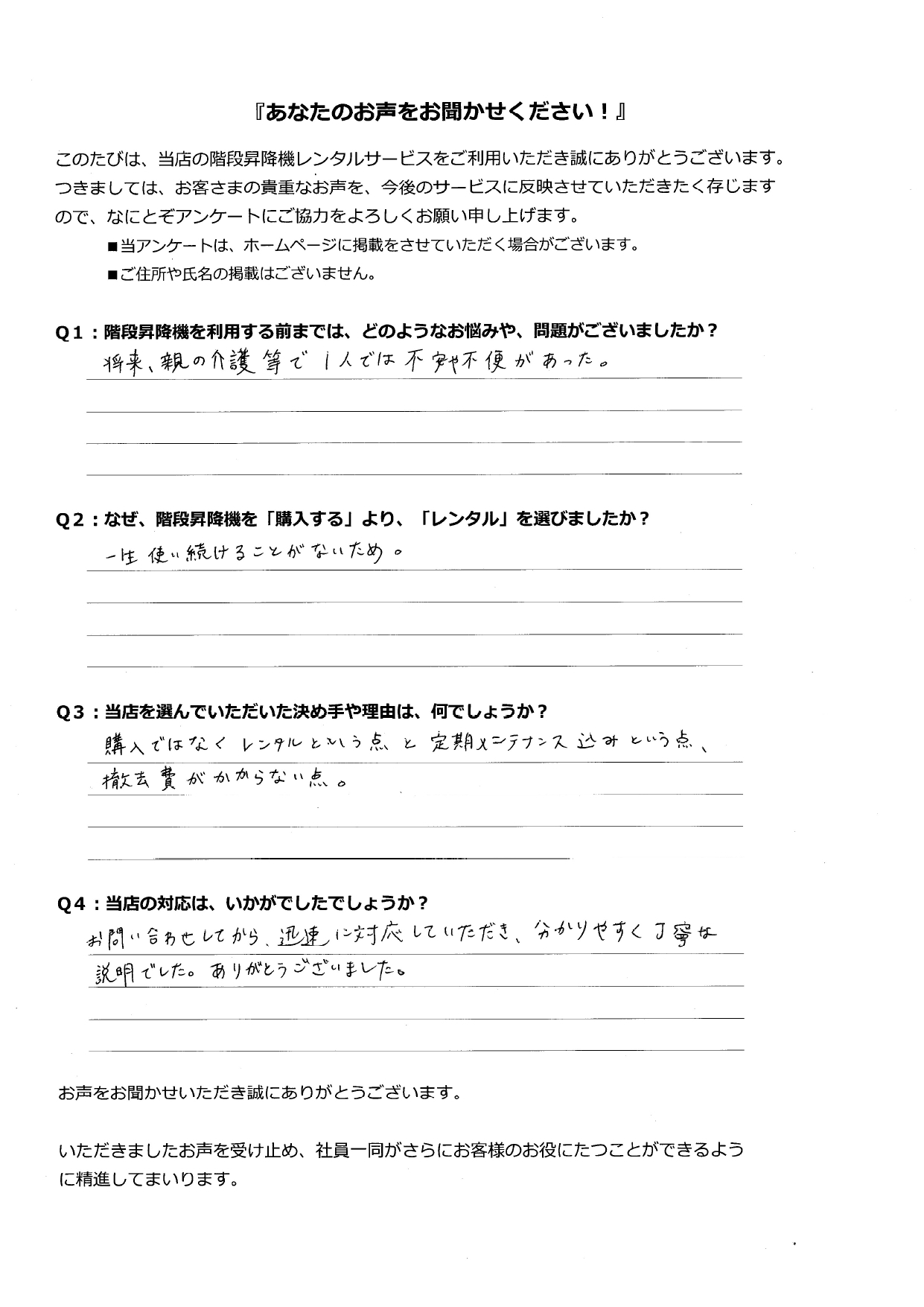 階段昇降機がどうして必要になったのか、なぜレンタルを選んだのかなどの質問にお答えいただいてます。